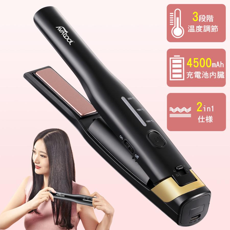 適切な価格 Avatool公式ショップ ヘアアイロン コードレス Usb充電式 ストレート カール 2way プロ仕様 男女兼用 ミニ ポーチ付き プレセント ブラック ギフト